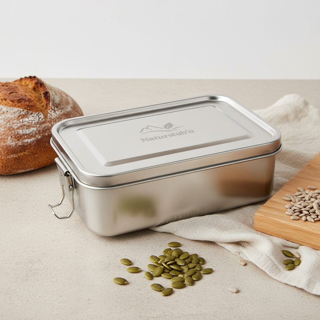Willkommen bei Naturstub'n, wo Qualität und Nachhaltigkeit Hand in Hand gehen. Entdecken Sie unsere edle Edelstahl Brotdose, die mehr als nur ein Behälter ist– sie ist ein Statement für bewussten Konsum und zeitlose Eleganz. Wir von Naturstub'n sind stolz darauf, Ihnen ein Produkt anzubieten, das nicht nur Ihren Alltag bereichert, sondern auch unseren Planeten schont. Tauchen Sie ein in unsere Welt und erleben Sie den Unterschied.